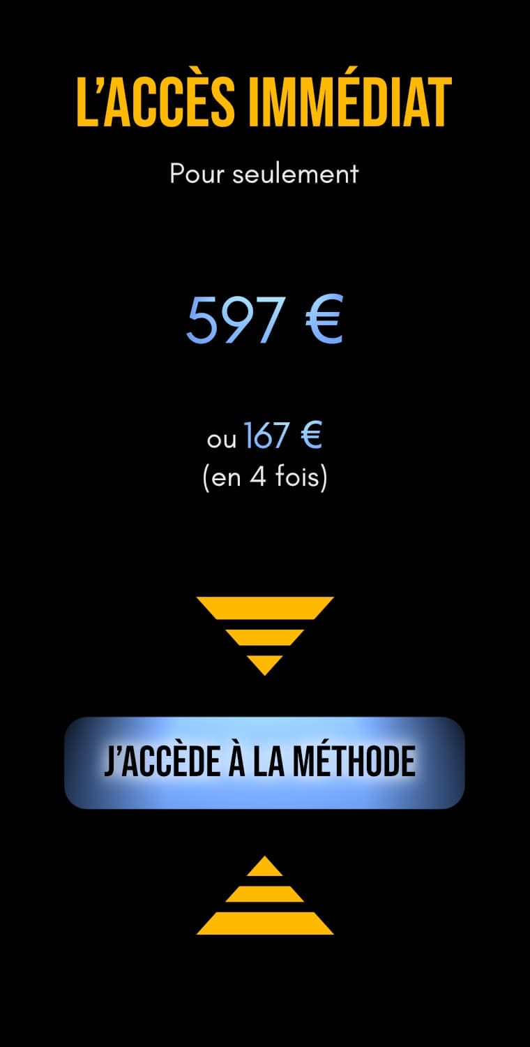 Tu obtiens accès au menu de la méthode immédiatement après l'achat (cours vidéo, PDF, communauté privée, groupe WhatsApp, etc.). Un email contenant le lien de connexion te sera envoyé pour cela. Tu pourras par exemple me contacter par sms directement si tu le souhaites.